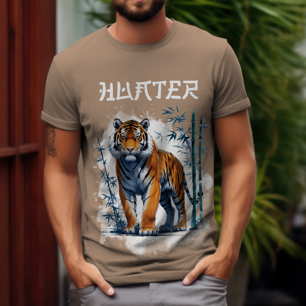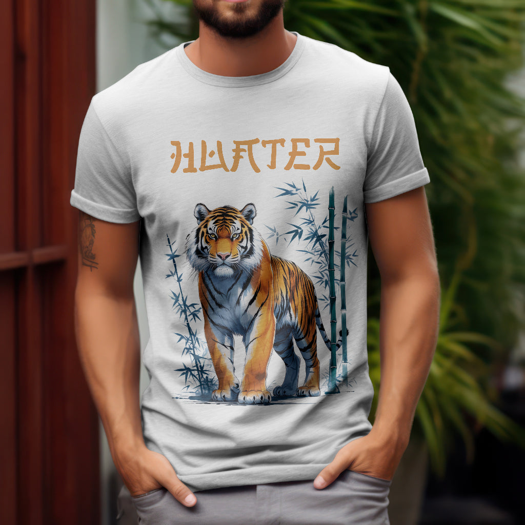 Unleash the power and grace of the majestic tiger with the Trithya Hunter T-Shirt. Inspired by traditional Chinese art, this premium cotton tee blends cultural heritage with modern style, making it a standout addition to your wardrobe.
