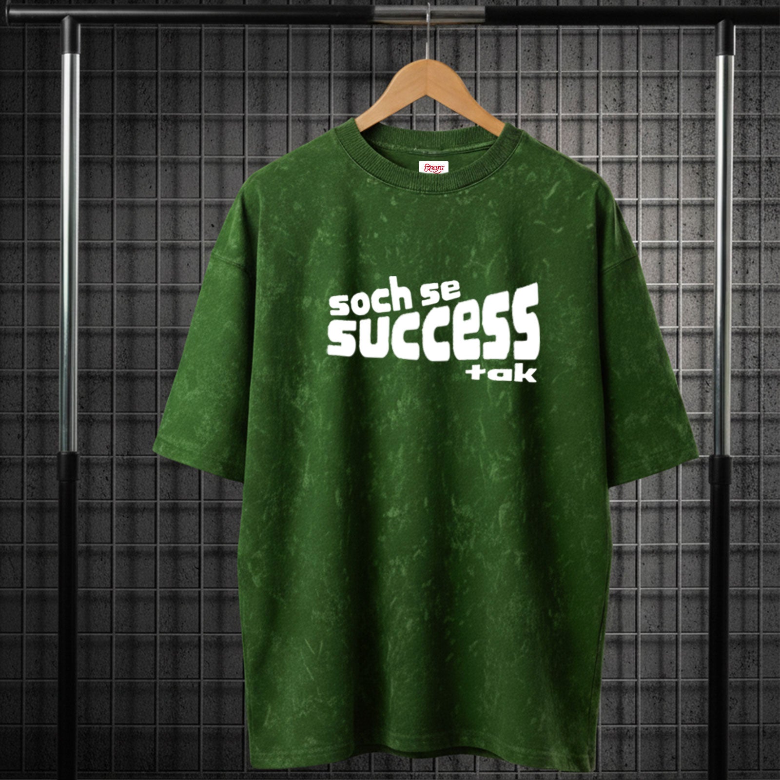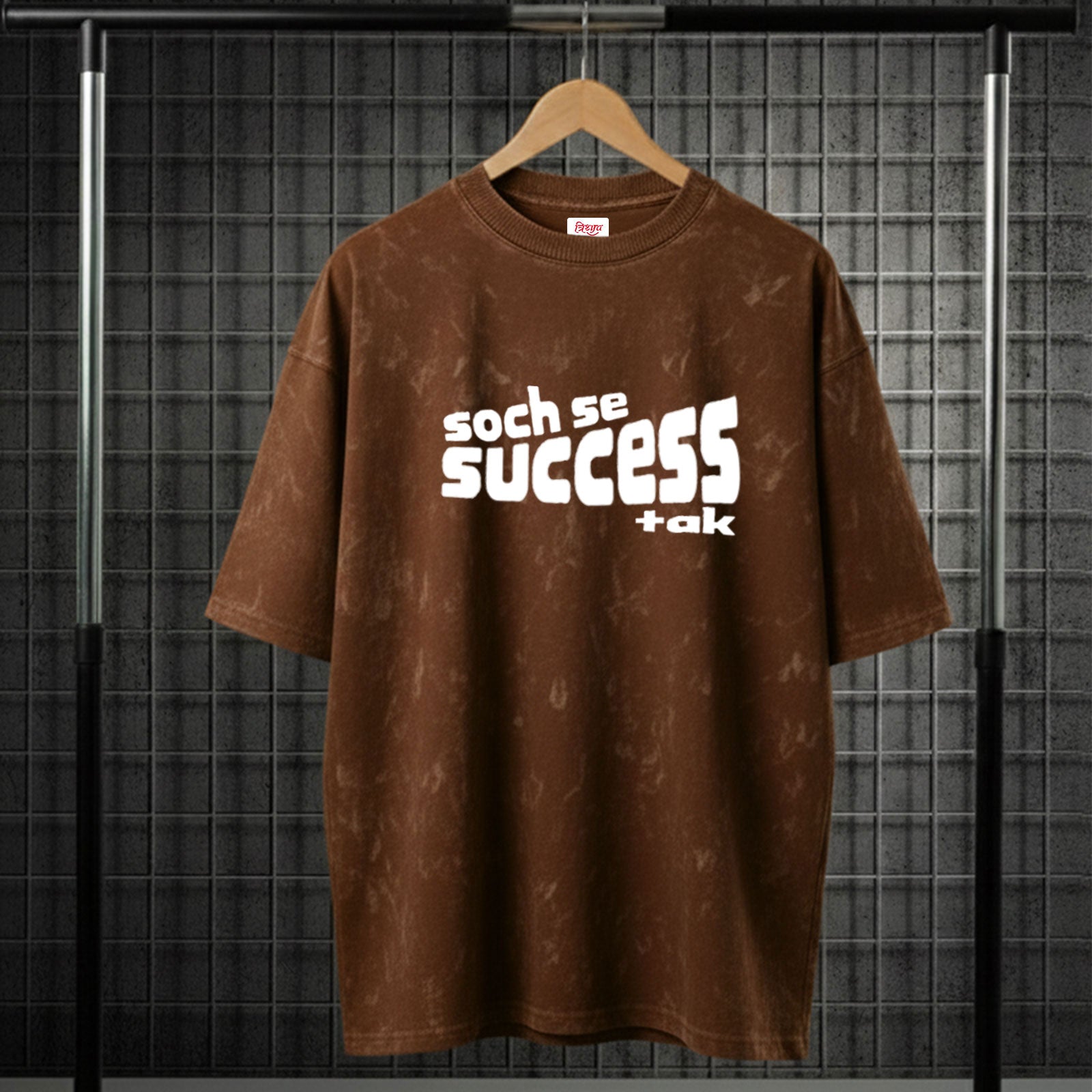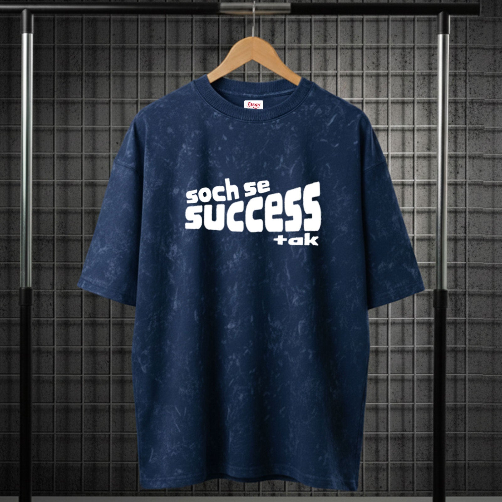 Big thoughts, bigger wins. The Soch Se Success Tak Acid Wash Oversize T-Shirt inspires with a rugged acid wash design and an oversized cut for street dominance.
