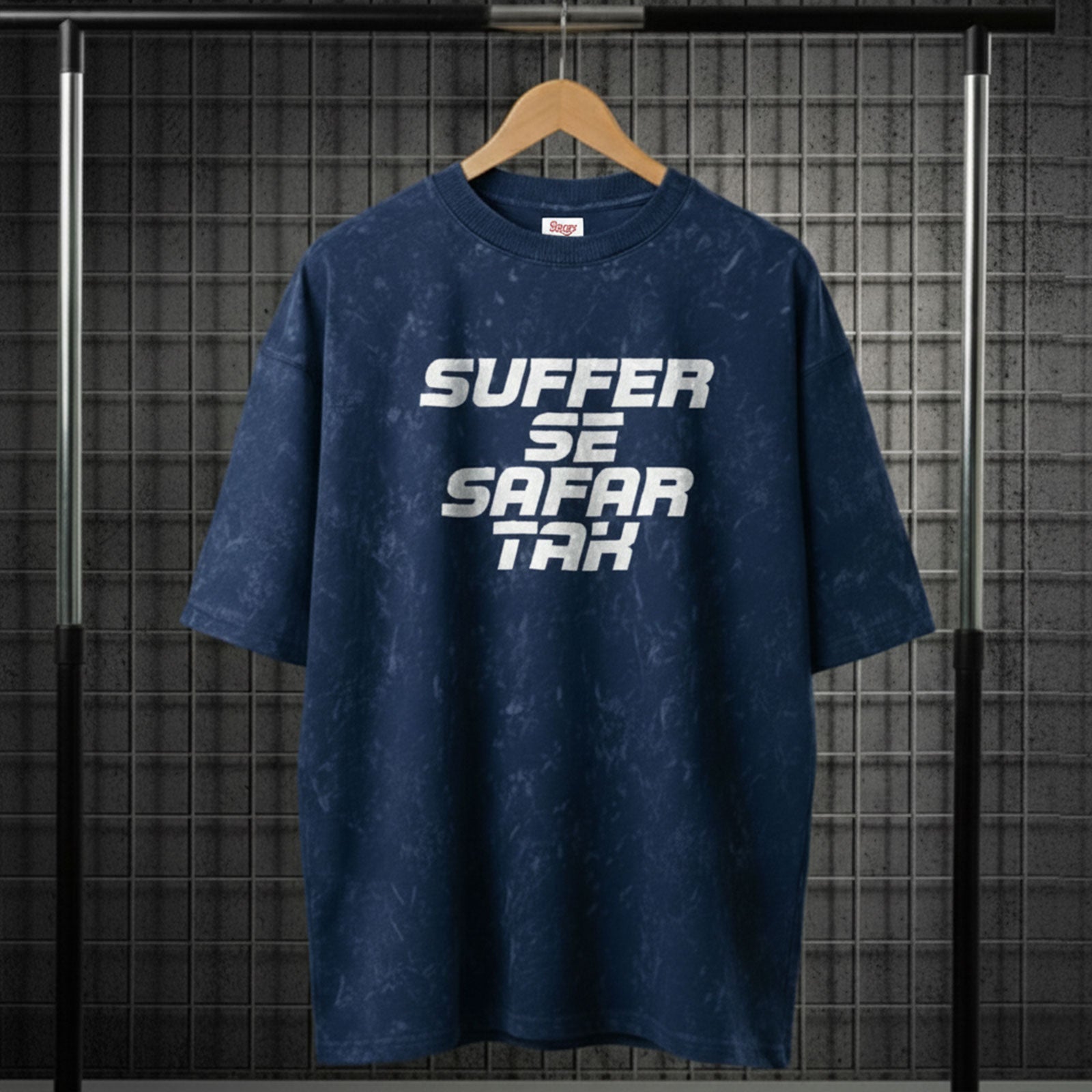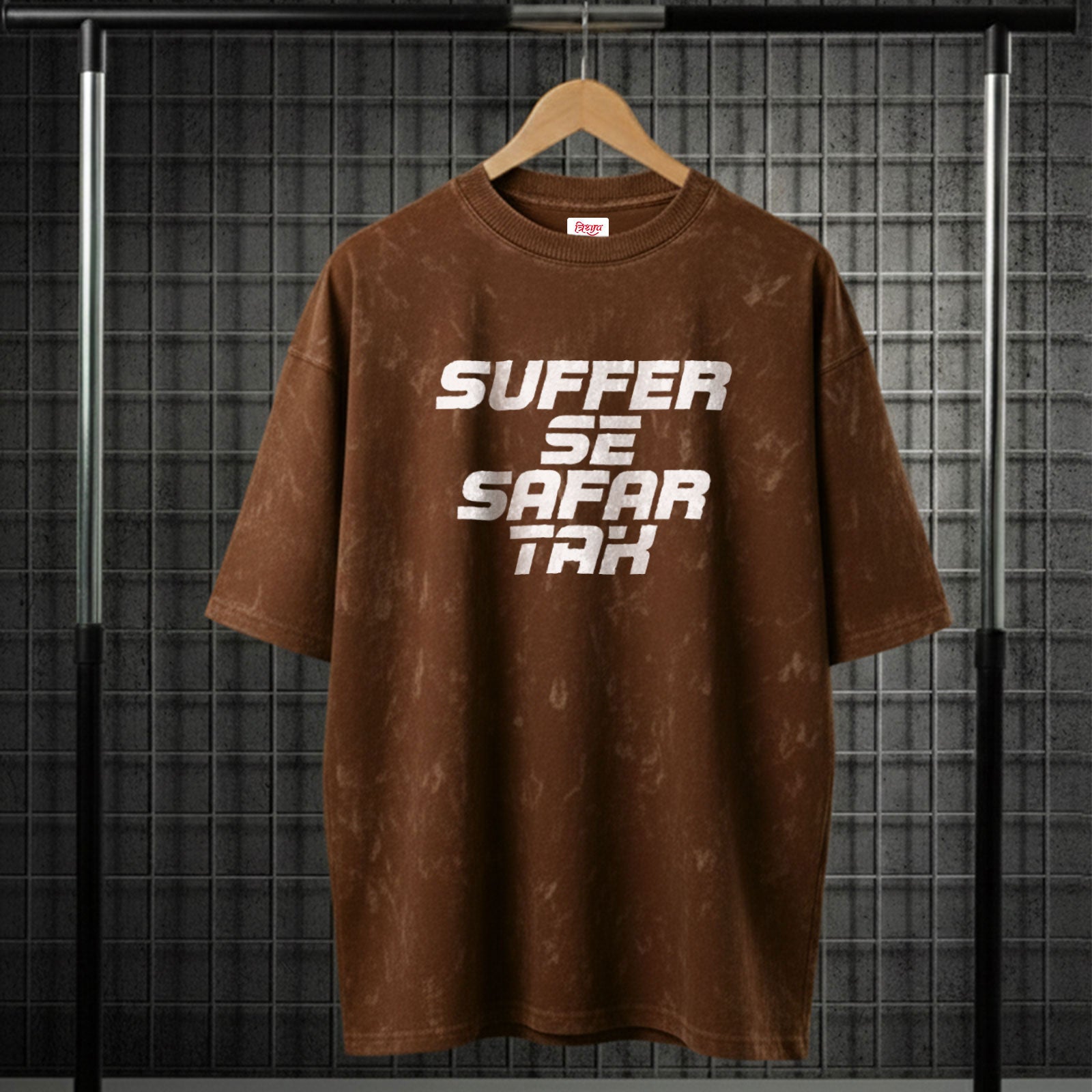 Every grind has glory. The Suffer Se Safar Tak Acid Wash Oversize T-Shirt tells the story of turning struggle into style with a bold acid wash look.