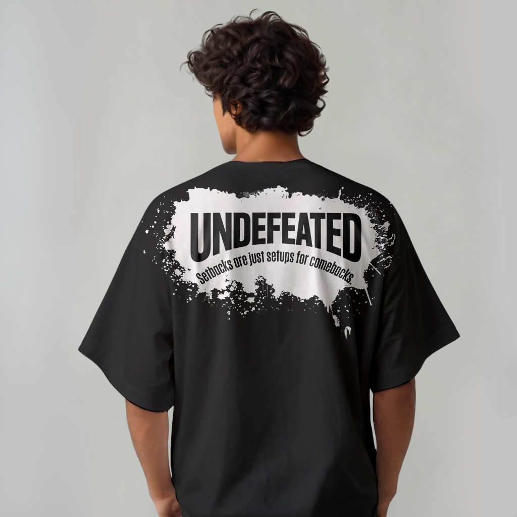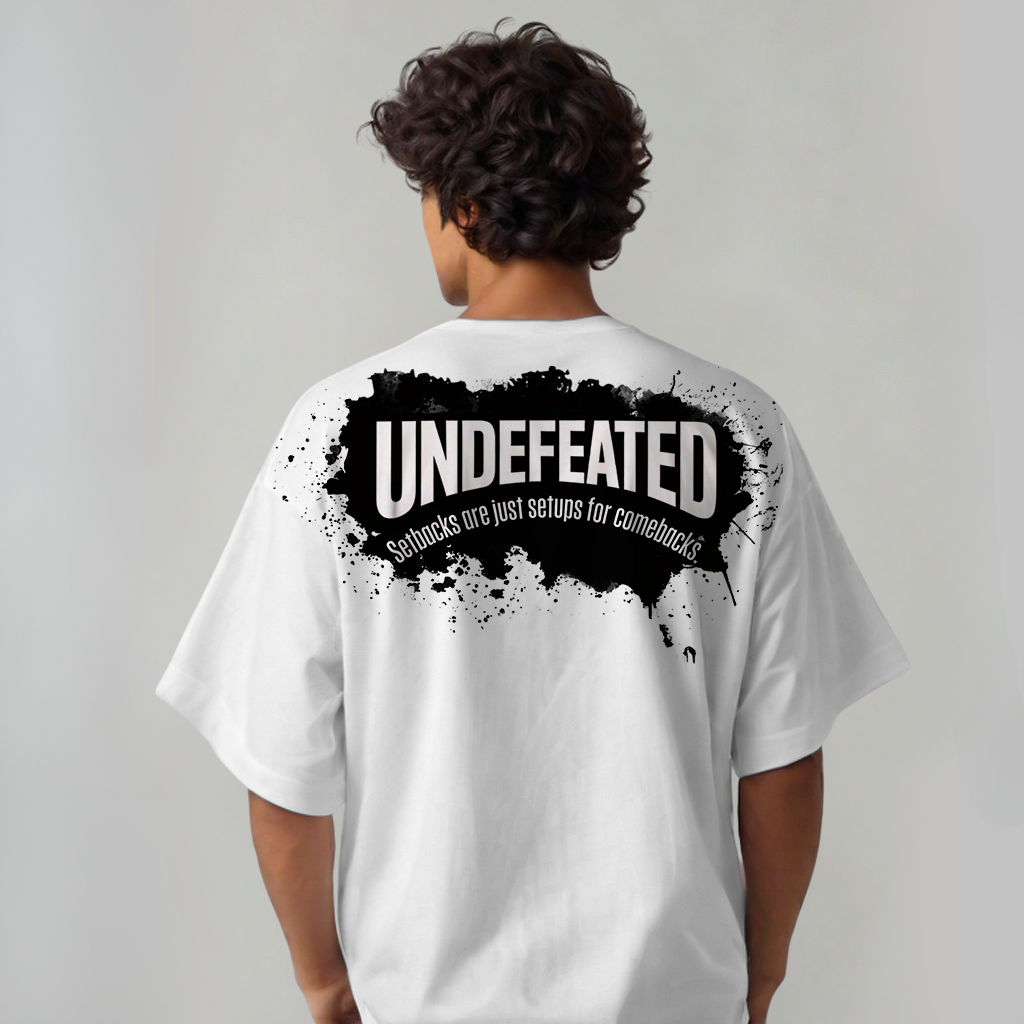 This oversized t-shirt is a total standout — both in comfort and in message. The bold “UNDEFEATED” print on the back, paired with the motivational quote “Setbacks are just setups for comebacks,” makes this piece not just stylish, but also incredibly empowering.